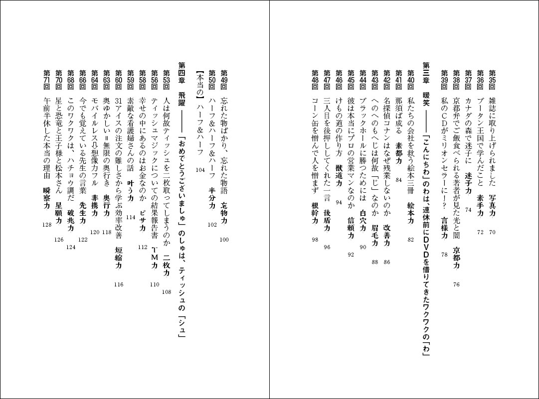 塾でも教えてくれない97個の力に名前を付け、企業に《ワクワク旋風》を起こした子育てパパの話。 企業内SNSピープルランキングNo.1社員のブログを《大々的に再編集》。心の力学の教科書、22世紀前に誕生。学生、サラリーマン、経営者、パパママ必読の書。 「野生のカマボコに会ってみたいんだ」「コンスタントパッション(恒常的な情熱)の方のコスパ」 | |